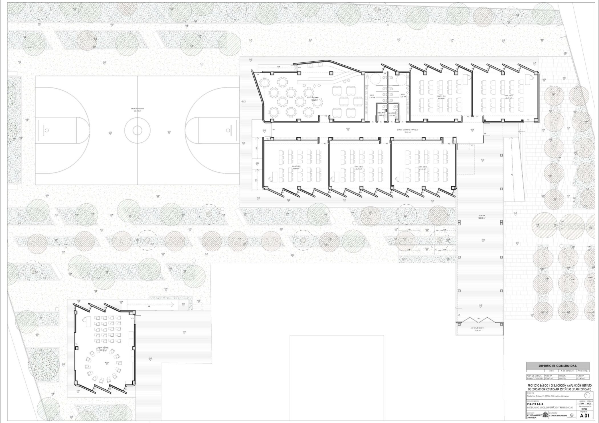 Ampliación de un instituto existente en Orihuela (Alicante), denominado «Las Espeñetas». Se le dota complementariamente de dos nuevos pabellones exentos, conectados con los previos a través de porches cubiertos que faciliten a los alumnos el cambio de aulas sin necesidad de quedar expuestos a las condiciones meteorológicas adversas