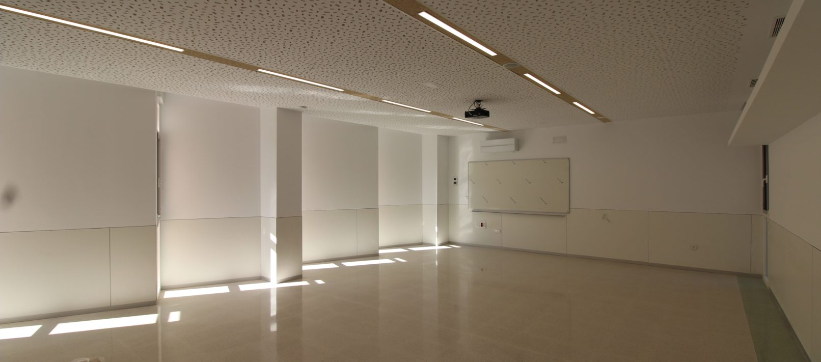 Hemos cuidado unos acabados interiores de gran confort acústico; el uso docente es especialmente exigente con este aspecto.