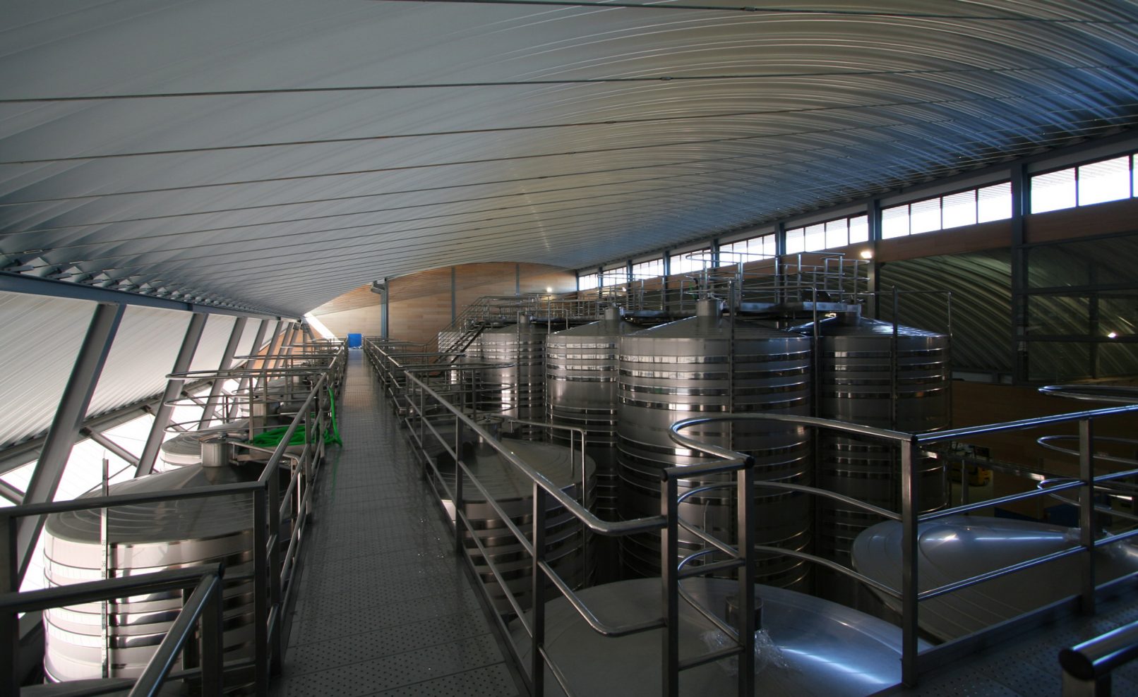 No apostamos por enmascarar, sumergir, mimetizar la construcción -opción respetable como cualquier otra. Era tal la envergadura dimensional y la audacia empresarial de aquel edificio, que reclamaba una autonomía formal que nosotros, respetuosos observadores, no contábamos con autoridad moral para negarlas. Pensamos en un espacio intimista para la producción del vino, mientras que la zona de tienda, exposición, sala de catas y laboratorios exigía una presencia más pública. Con todo, no se ha pretendido un espacio oscuro, hierático, de reminiscencias simbólicas, sino un lugar de controlada luminosidad, de exhibición discreta de la pulcritud y asepsia del mundo de la industria agroalimentaria.