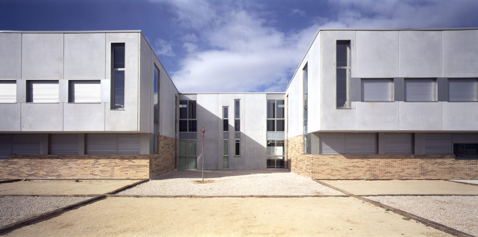 Hemos optado por un edificio muy extenso, desarrollado prácticamente en planta baja. Se trata de una trama de volúmenes y vacíos extendida por la parcela; los volúmenes, en geometría diferenciada, corresponden con los espacios docentes, y los vacíos a patios ajardinados. Uno y otro orden se encuentra cosido por los espacios de circulación a modo de estructura vertebral del organismo, iluminados como las aulas por los patios ajardinados. El polideportivo es la pieza que, por uso para alumnos de poca edad, elige un diseño muy blando con una interesante propuesta espacial y formal.