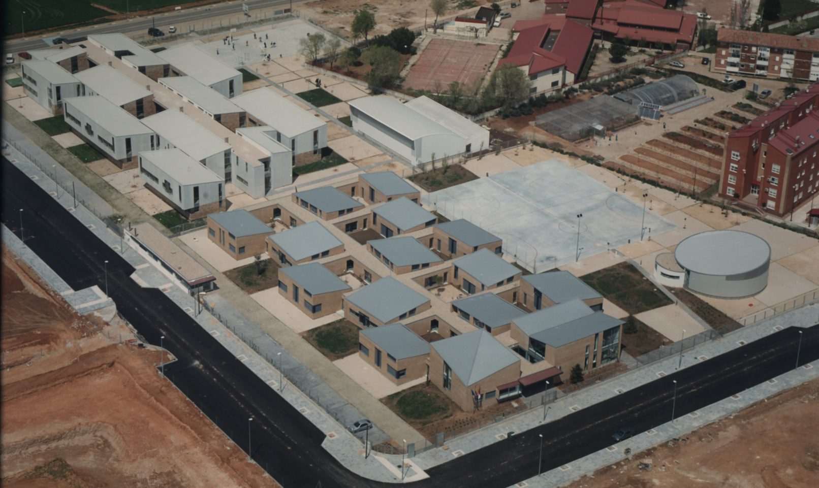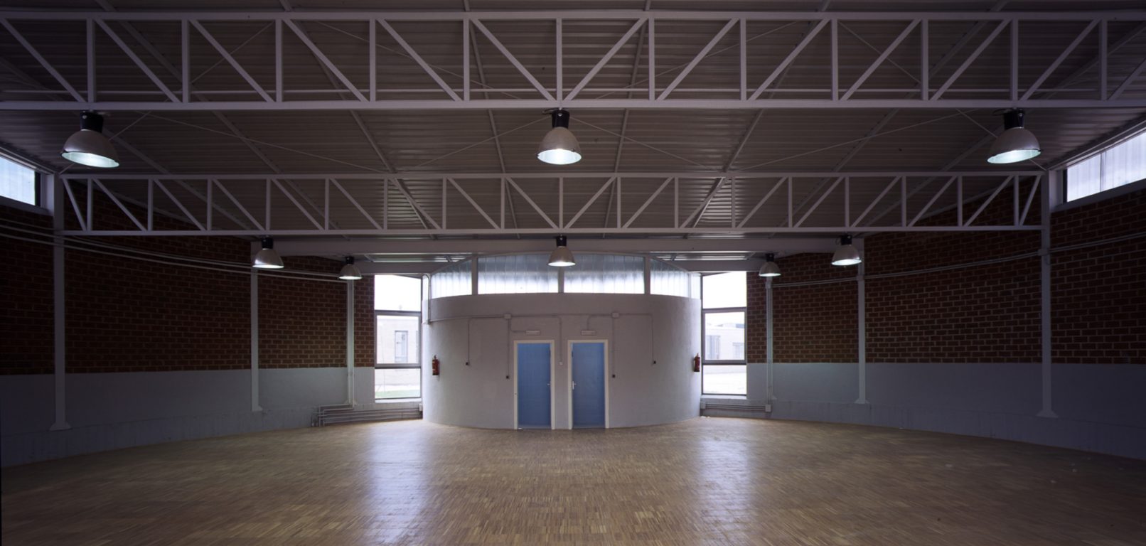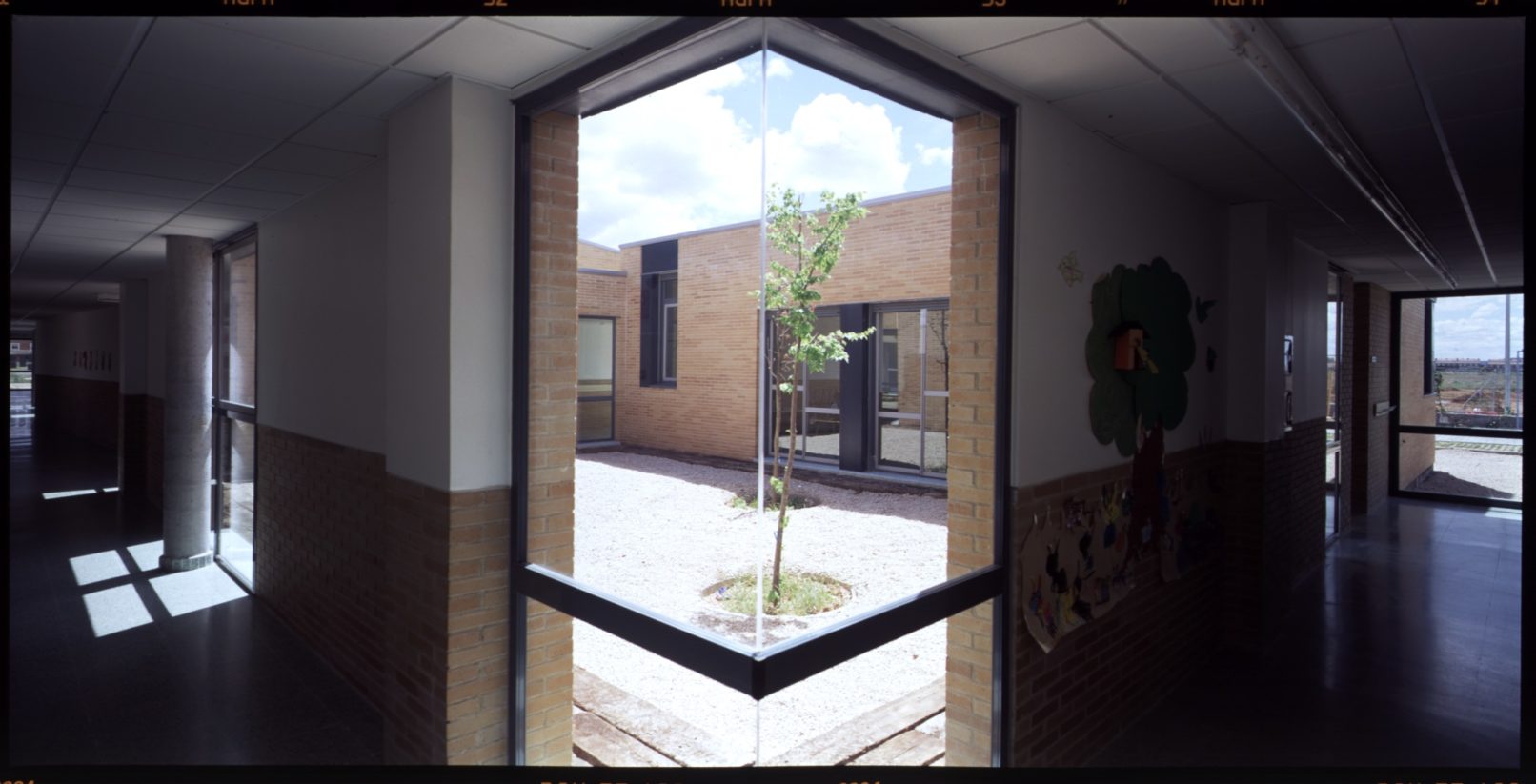 The design team opted for a broad-based unit, almost entirely built on ground level. A pattern of full and empty spaces extend over the plot; the full spaces, of varied geometries, become the teaching areas and the empty spaces become landscaped gardens. Both areas are linked by the transit zones that are structured mimicking the idea of the backbone of a vertebrate, the patios provide light throughout the whole area. The sports center has a very bland design, interesting in its spacial and formal aspects, that serves as a space for small children to practise recreational activities.