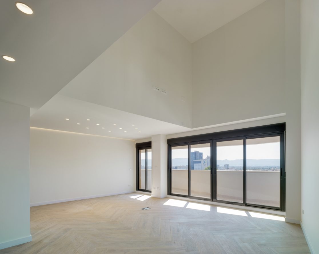 Dotamos a las viviendas de penúltima y ultima planta de terrazas aún más generosas, vinculando el caso de los áticos a espacios en doble altura bajo cubierta.