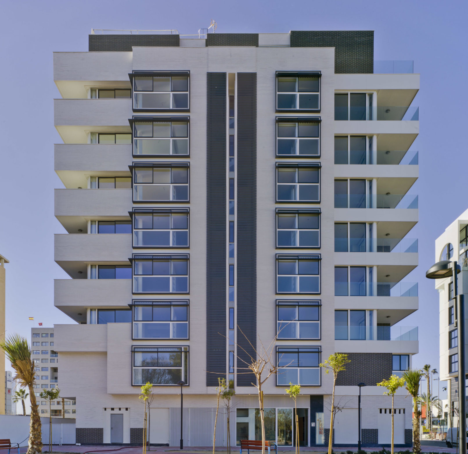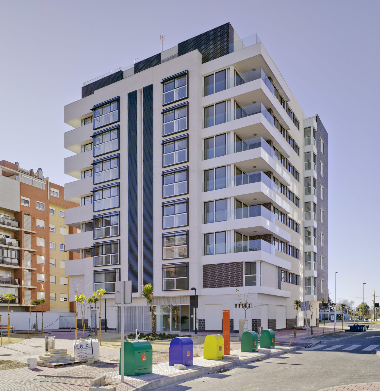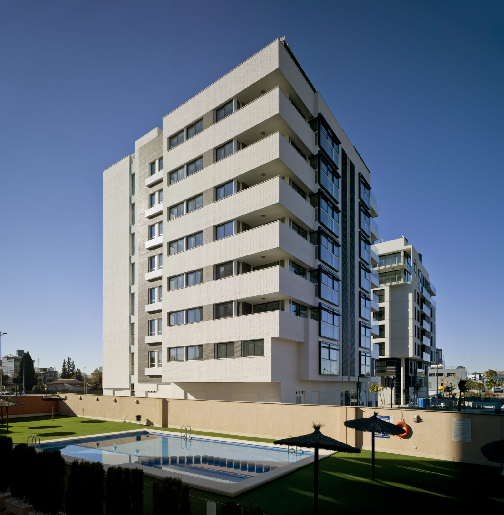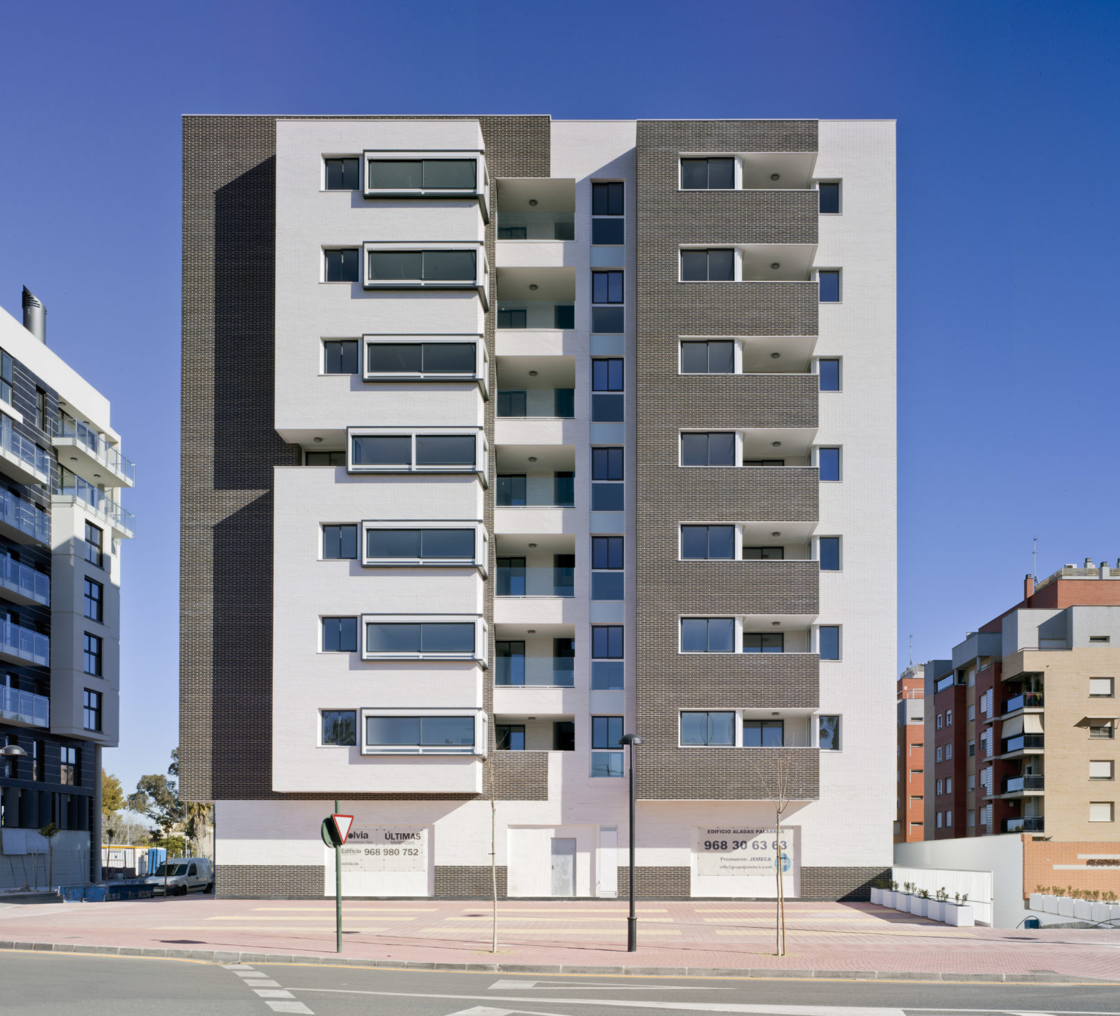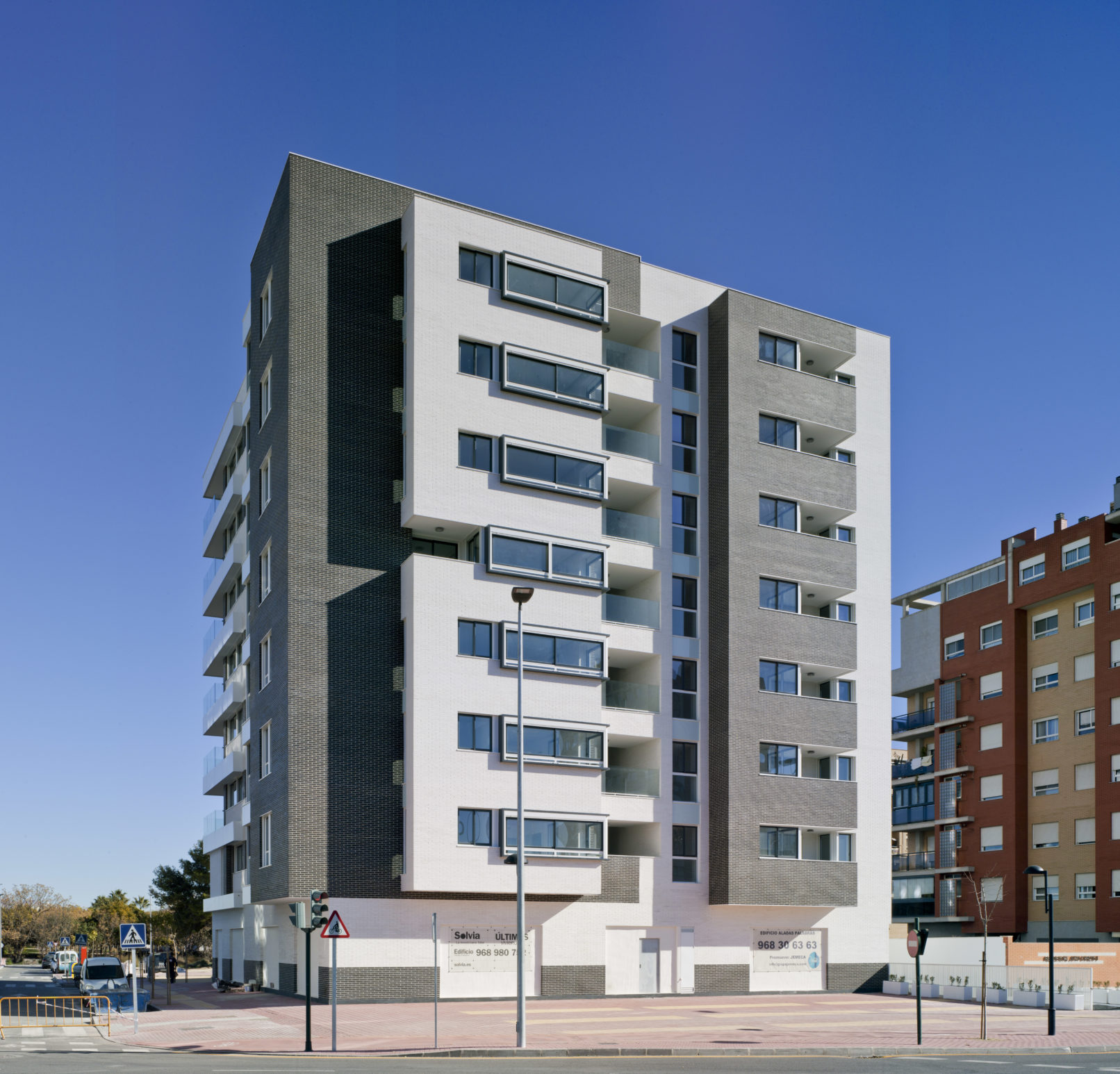 Interesting collective housing project in Murcia (Spain). Two underground levels and nine floors of this building with more than 6.200 square meter located in the most prestigious residential area of the city.