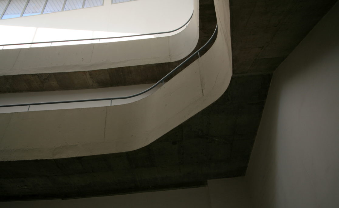 Curving up backwards over itself to form a distorted spiral, a huge ramp gradually rises from street level to the building’s full height, surrounding an inner central space lit from above. The classrooms are located on the outside of the Möbius strip; on the inside we find the public corridor. The building provides highly accessible classrooms adapted to suit the students, easy to locate and to distinguish; allowing for exchanges on the human, social and cultural levels. The second unit houses the administrative, departmental and managerial staff. The building is modeled vertically to connect on all of its three levels to the teaching area. It contributes to create a point of reference in the urban context. In the third area we placed the audiovisual and technological areas, a key element in language training. It is partly situated underground, mirroring the rest of the building above ground. The outside perimeter provides light and ventilation, fully exploiting the sloping classroom area.