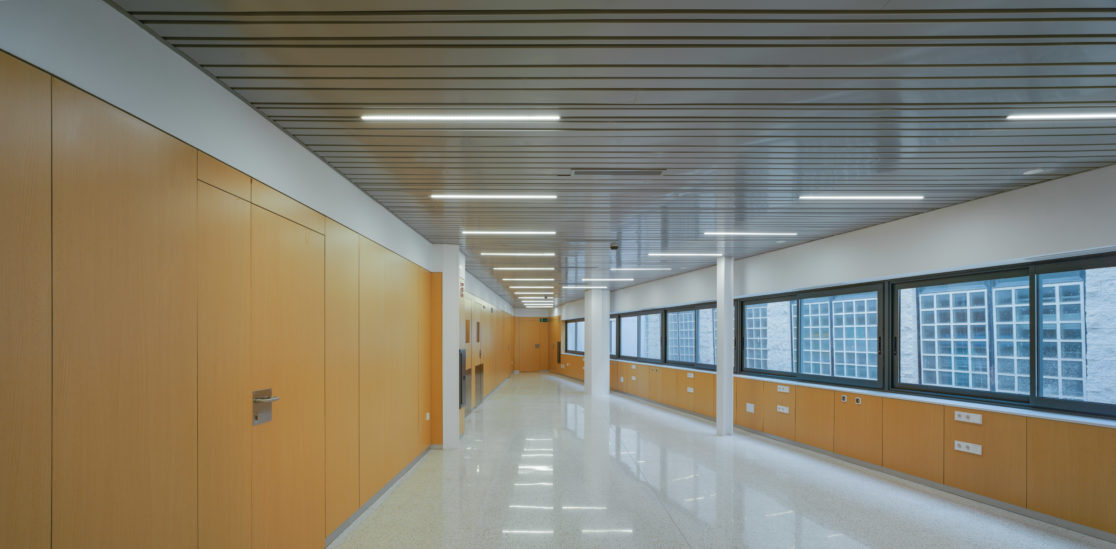 The new pavilion maintains a functional link with the adjoining hospital, especially between the techniques area and the operating rooms, ICU and even hospitalization. This link is especially evident on the first floor, since the reform of the first floor of Block D of said hospital is intended to integrate it into the operational and functional scheme of the new building.