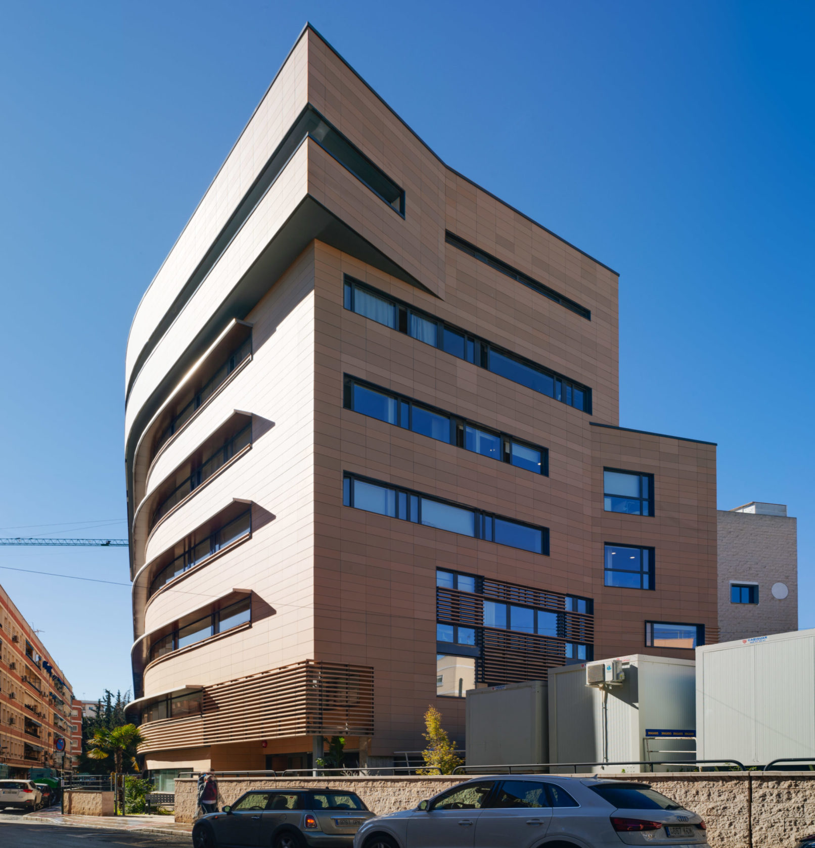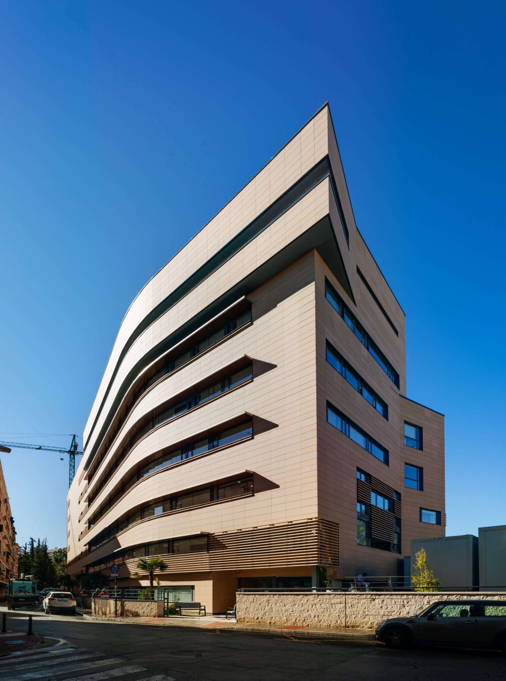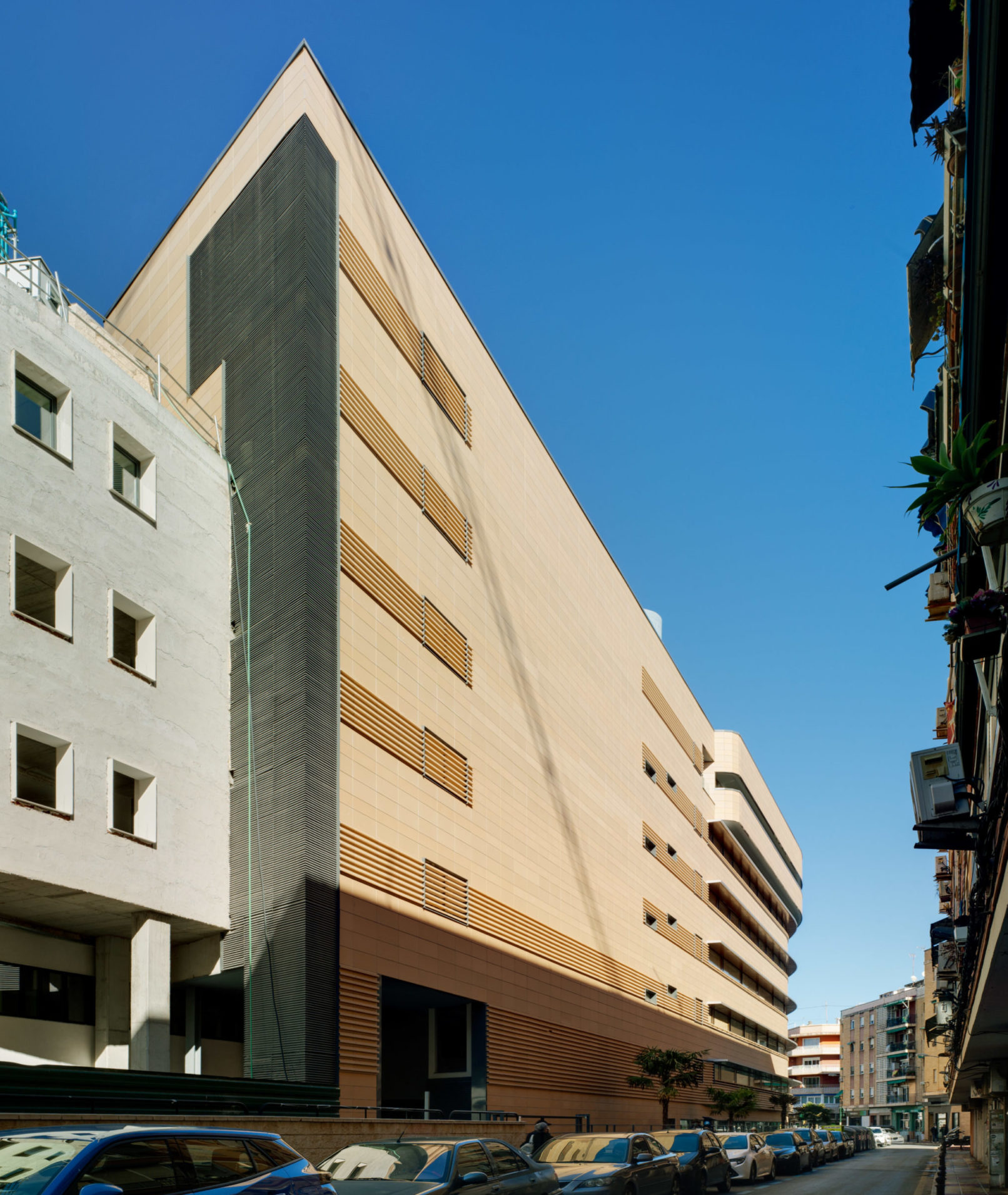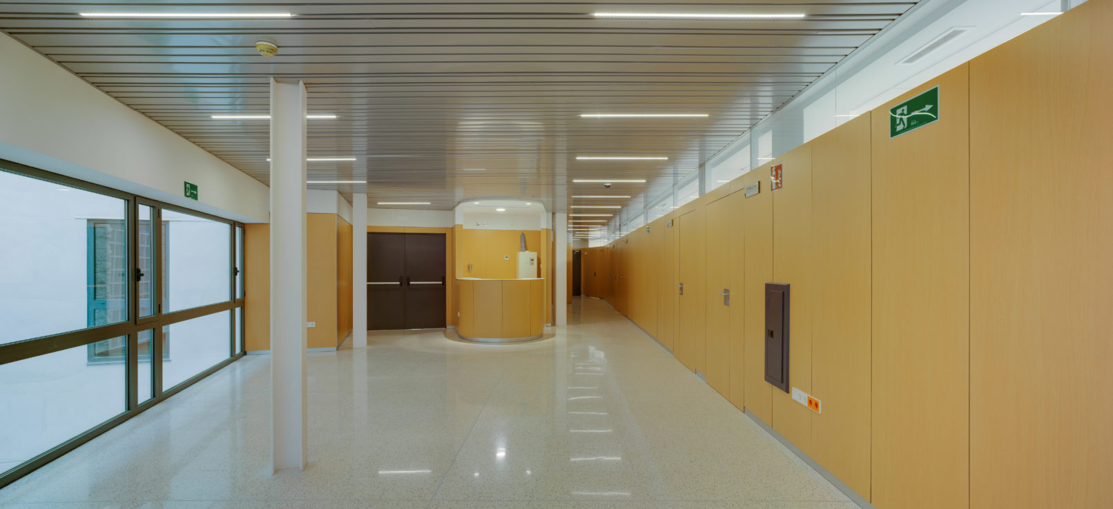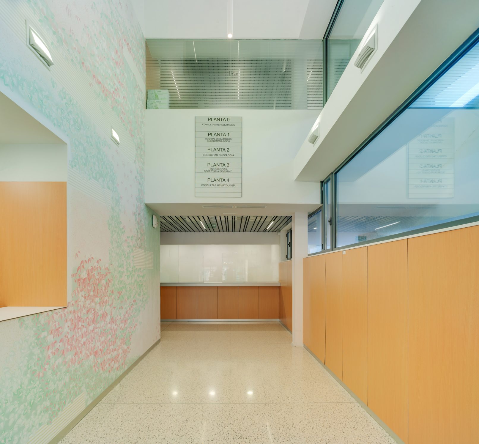 This building includes an Oncohematology Day Hospital, Multipurpose Day Hospital, Physiotherapy, Interventional Area (Digestive Endoscopies, Pneumology, Allergology, Cardiology) and Duty Personnel Residence.
