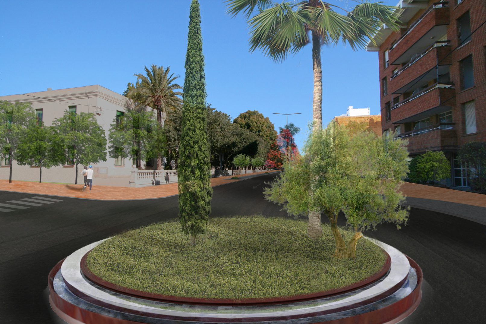 El espacio de nuestra intervención busca la belleza. El uso de los materiales de pavimento (memoria de una ciudad equilibrada y humana), la omnipresencia de elementos naturales (árboles, arbustos, flores, agua) a lo largo de todo el diseño, la conquista de lugares donde poder estar y disfrutar de la ciudad (paseos, replacetas, bancos, miradores, pérgolas de sombra), son todos recursos al servicio de la belleza. Y hacemos compatible esta exigencia humana con el confort, es decir, el bienestar, la comodidad en el uso.