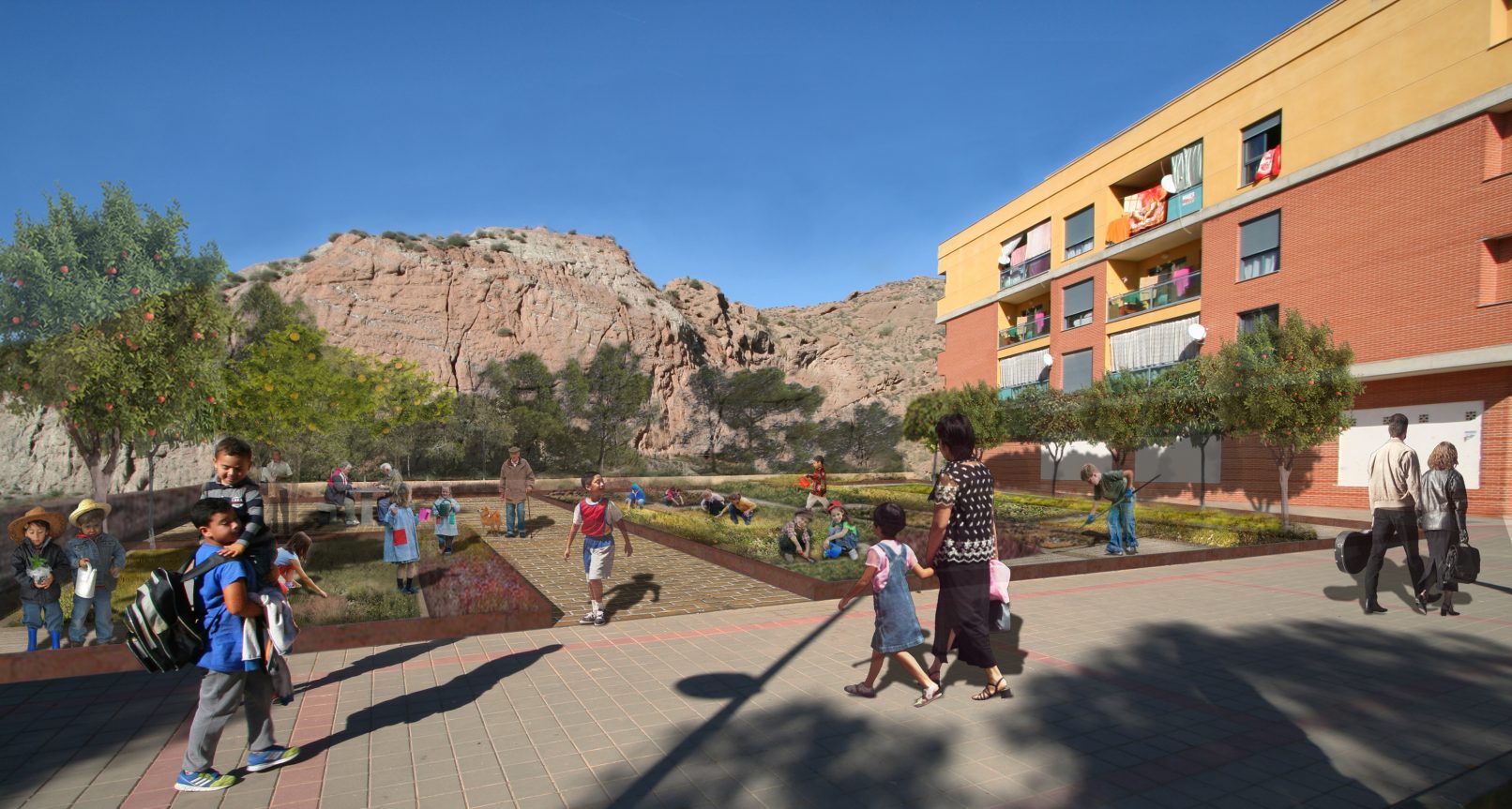 Contest for the Urban Regeneration Plan in a very important area of the monumental city of Lorca (Spain), which suffered the effects of an earthquake four years ago. Precisely, the project focus on “Los Angeles and Apolonia” Neighbourhoods’ – an area of 16 hectares on North-East of Lorca, with spectacular views towards the landscape and historical urban centre.
