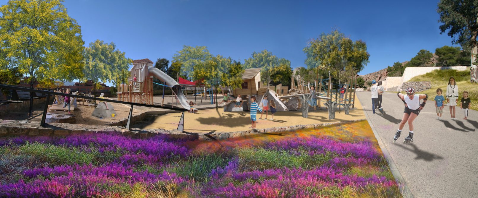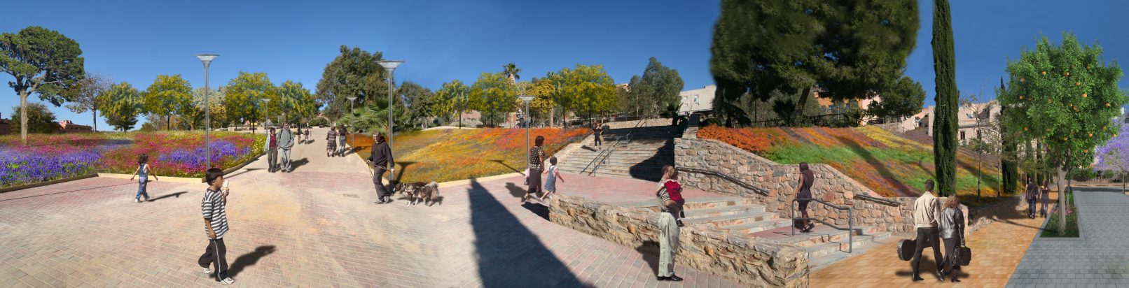 La manière spécifique de réaliser cet idéal est de faciliter la vie en commun, essentiellement dans les espaces publics ouverts (Par d capitaine, Parc de Los Angeles, Jardins de l’Écrivain Alonso Espejo, Jardins du Docteur Fleming, …) et dans les rues.