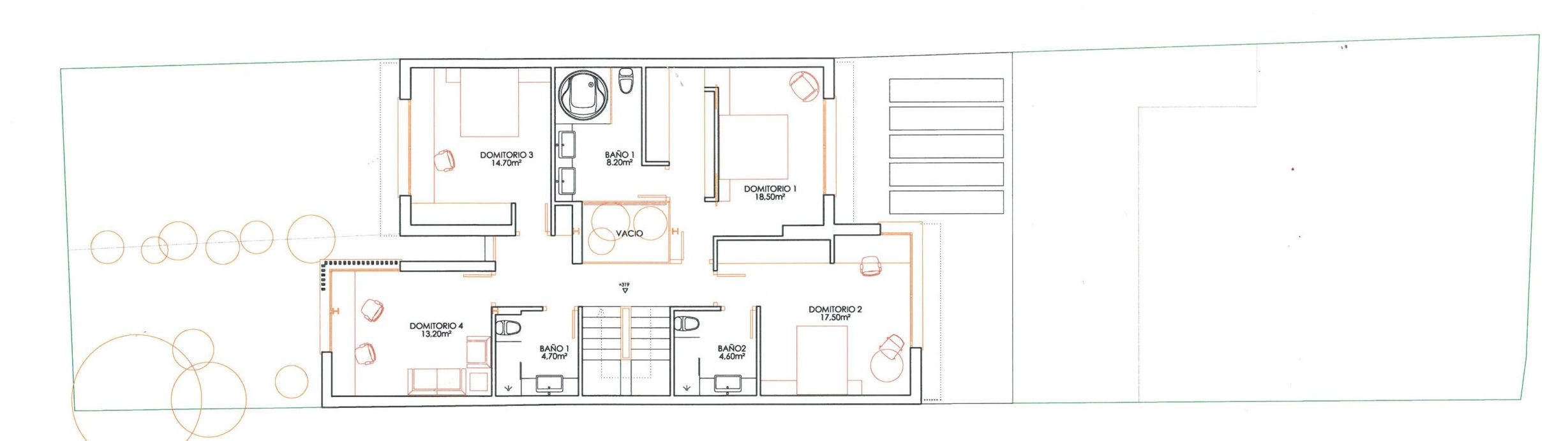 - Aumento de tamaño de la planta primera, de modo que se obtengan cuatro dormitorios con tres baños.